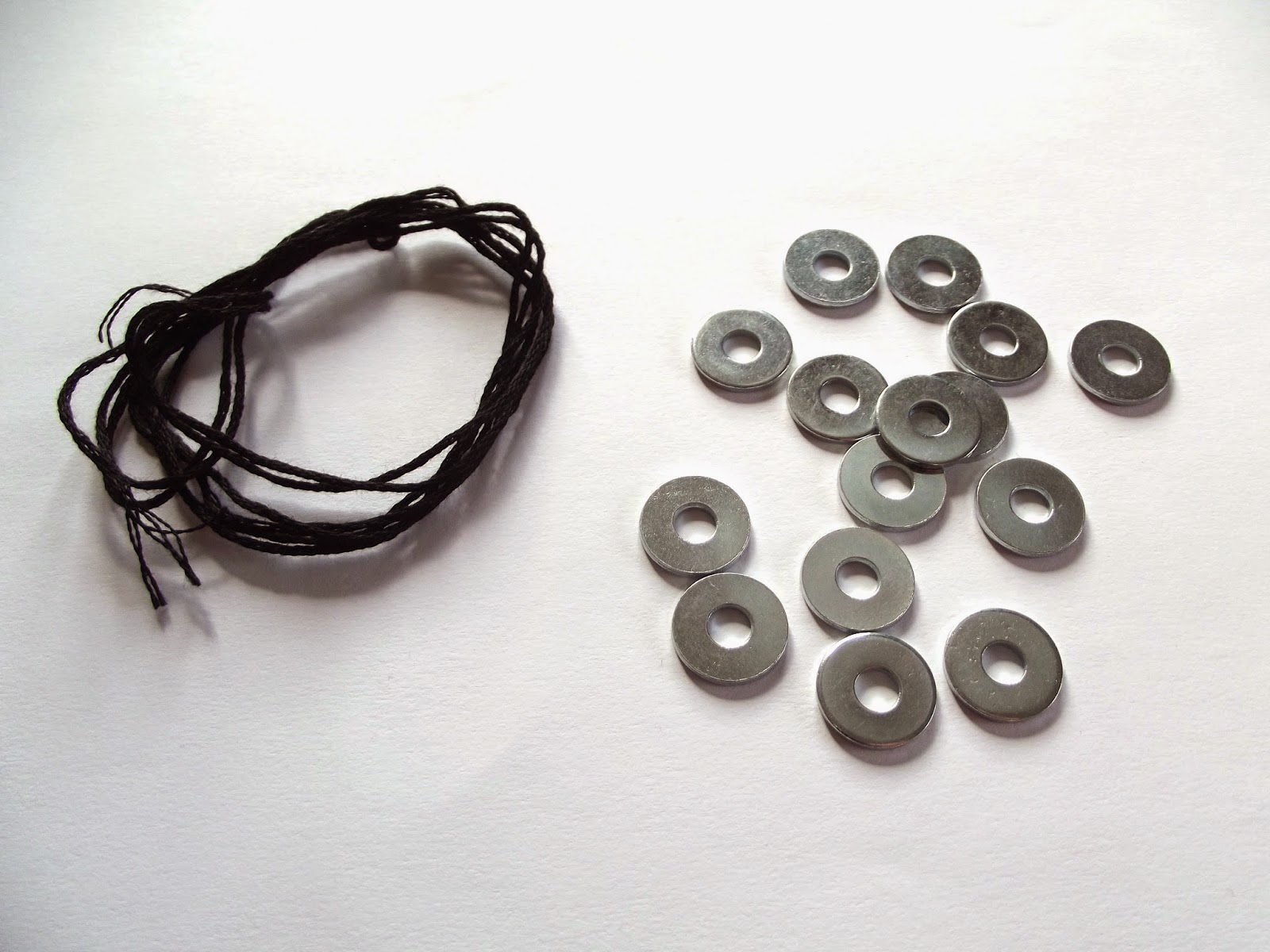 Aby zrobić ten naszyjnik potrzebne ci będzie mulina i podkładki ze sklepu budowlanego.
